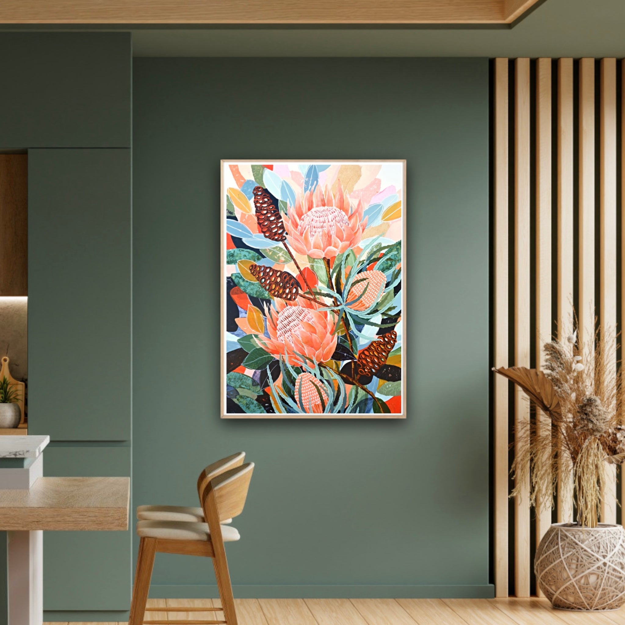 This is such a whimsical Piece that has truly captured my heart. It’s layered with so many colours, textures and shapes and really brings the attention as much to the background as the floral elements. It’s everything I love in an artwork, and a piece that reflects a wandering mind and wonderful outcome!