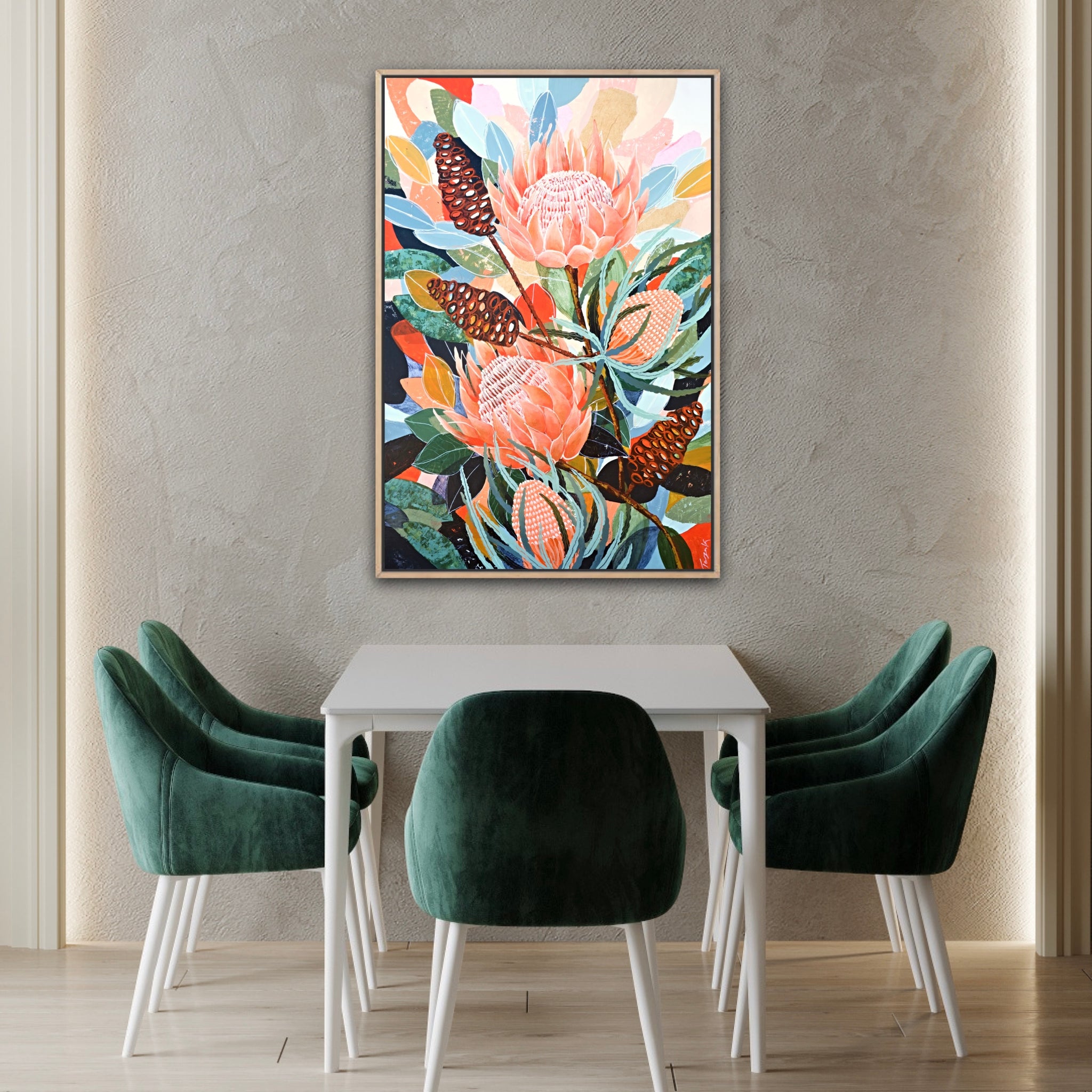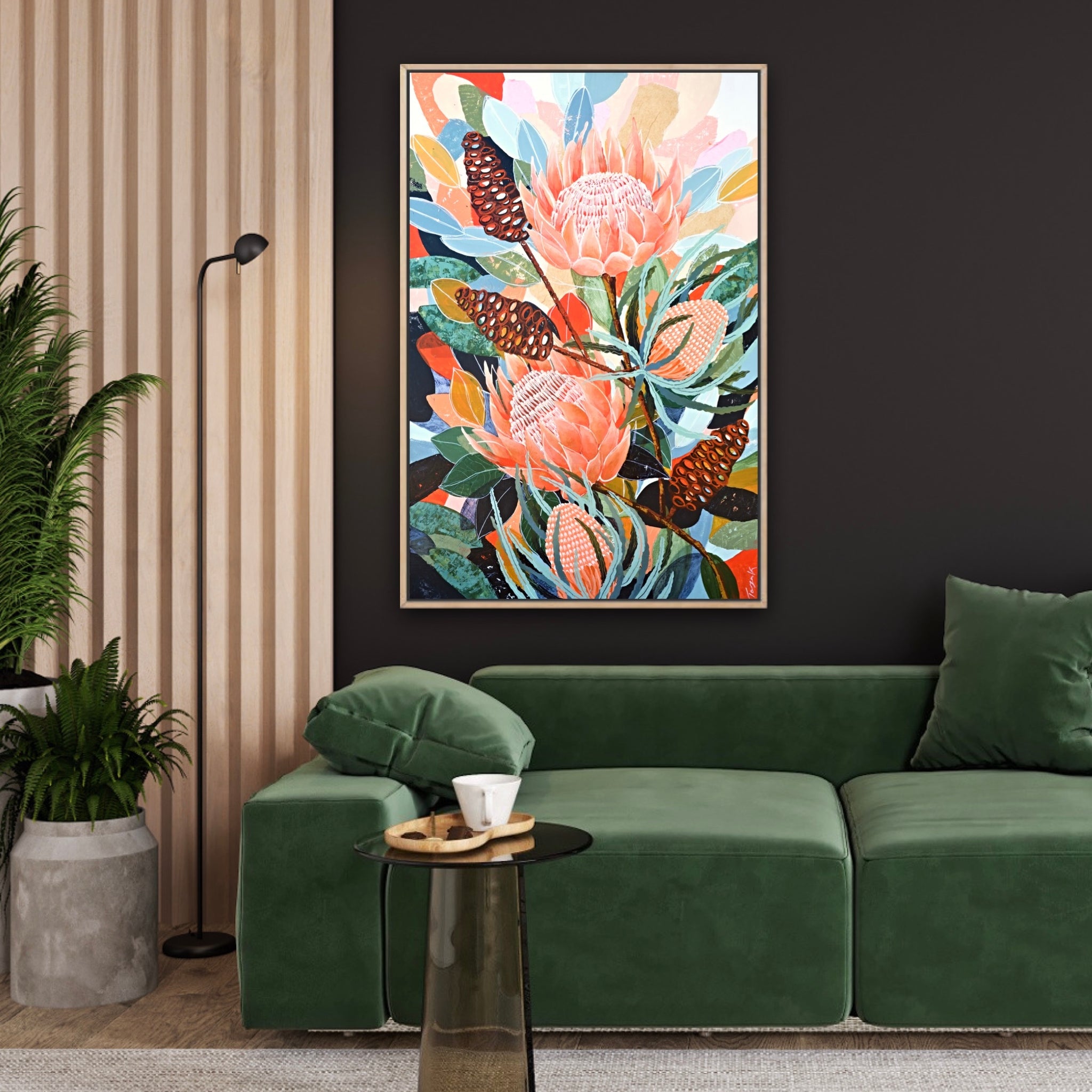 Framed in a beautiful Tasmanian Oak floating frame, this piece includes free shipping Australia wide. It will also come with a certificate of authenticity and hanging wires attached ready to pop straight onto your wall!